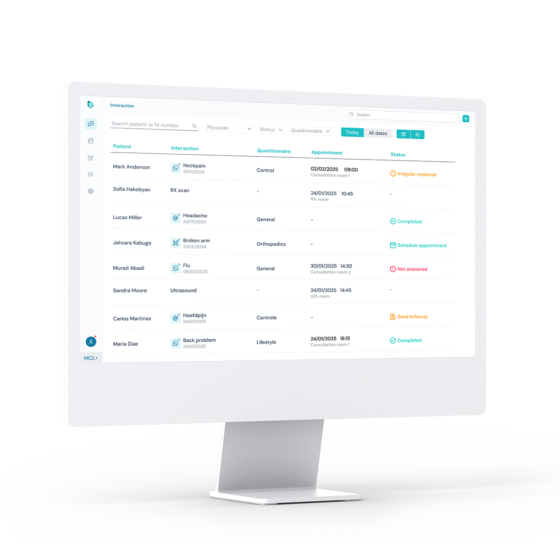 With the administrator's side of Vesalius.ai, you get a clear overview of the anamnesis status of your patients. Need to follow up? You're just one click away.